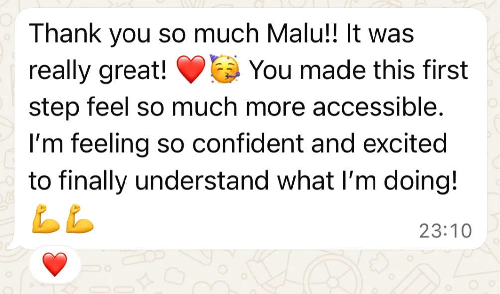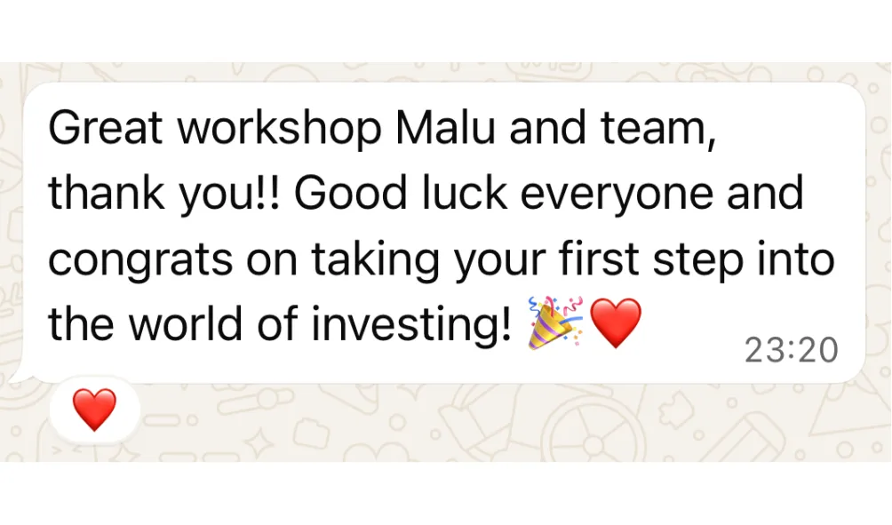 You’ll join a WhatsApp group where you can ask questions, get clarity on the technical steps and stay accountable as you move toward completing your own first investment.